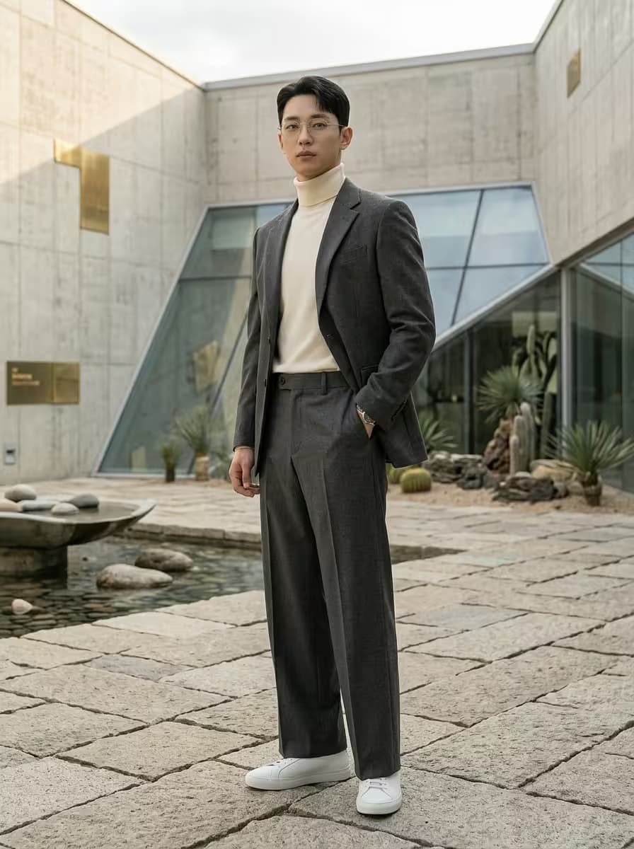 절제된 우아함, '조용한 럭셔리'의 정수를 보여주는 미니멀 와이드 트라우저입니다. 뛰어난 형태 유지력을 지닌 하이엔드 원단을 사용하여 하루 종일 구김 없이 깔끔하고 유연한 실루엣을 유지합니다. 와이드한 핏감으로 편안함을 주면서도 구조적인 칼주름이 포멀하고 세련된 무드를 잃지 않게 잡아줍니다. 깊이 있는 차콜 그레이 컬러로 다양한 상의와 매치하여 기품 있는 스타일링을 완성해 보세요.
